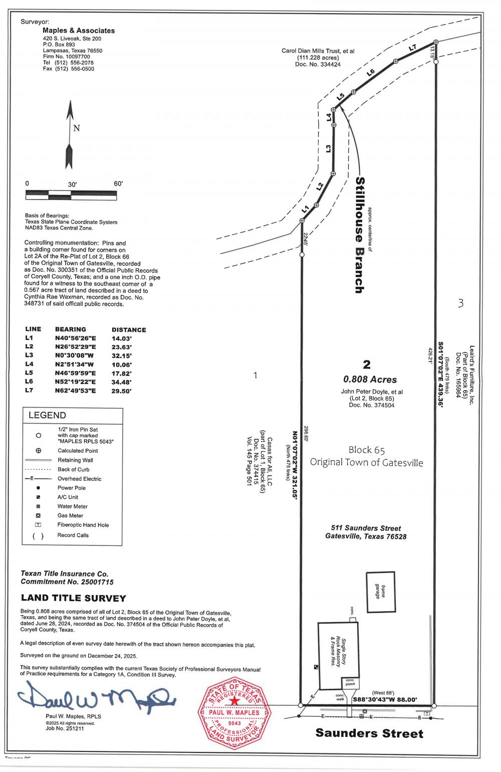 Staff has received an application requesting the rezoning of the property located at 511 Saunders Street, identified as Original Town of Gatesville, Block 65, Lot 2, consisting of approximately 0.808 acres. The subject property is currently zoned Residential Two- to Four-Family (R 2-4), and the owner/applicant, Kaleb Hitt is requesting a zoning change to Business Commercial (BC).
